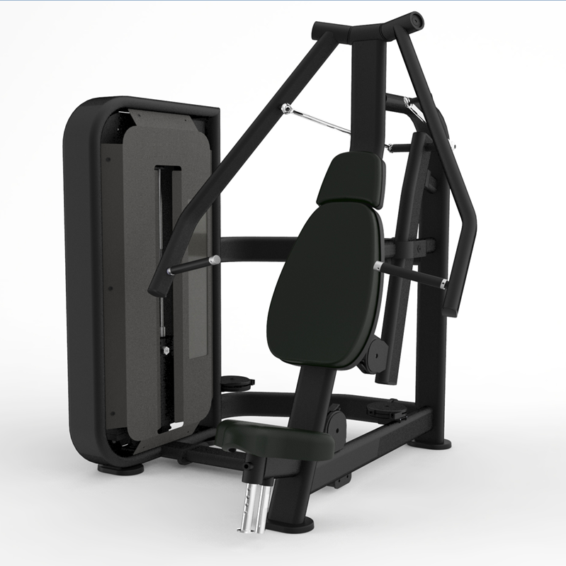 1.外形尺寸 1471×1395×1820(長*寬*高) 2.嘜頭要求 以客戶要求(中文或英文) 3.主機包裝 整機安放在棧板或紙箱包裝(視客戶需要) 4.運輸要求 汽車零擔或集裝箱(視客戶需要) 5.鍛煉部位 三角肌前部、三頭肌、胸大肌 6.主框架 材質:Q235A;規格:龍門架平橢150*50*t2.0,副架平橢120*50*t2.0。 7.主轉軸 材質:45#圓鋼;規格:Φ25 8.主軸軸承 人本軸承:6205 9.座墊 座墊可調,材質:PU發泡成型;顏色:墨綠色 10.鋼索 日本進口材質生產的高柔韌性含油鋼絲繩,表皮:進口PA材質,規格:Φ5.6 11.導桿 實心、鍍鉻;規格:∮19*1250 12.滑輪 尼龍+玻璃纖維;規格:∮117 13.防護罩 龍門架兩側防護;材質:鐵皮+亞克力板,亞克力板單面磨砂半透明,δ=3mm,固定方式:磨砂面向外,螺栓固定 14.把手護套 材質:PVC/塑膠,撕不破;顏色:黑色 15.貼地盤 橡膠,規格:Φ175*120*23.5 16.端蓋 材質:鋁合金;顏色:高光面 17.管塞 材質:塑料;顏色:黑色 18.配重鐵 材質:鑄鐵 最大配重:87kg 最小配重:5kg 顏色:黑紗紋 19.整機顏色 主架:閃銀黑灰砂紋 護罩:黑色銀砂紋 警示部件:黃色