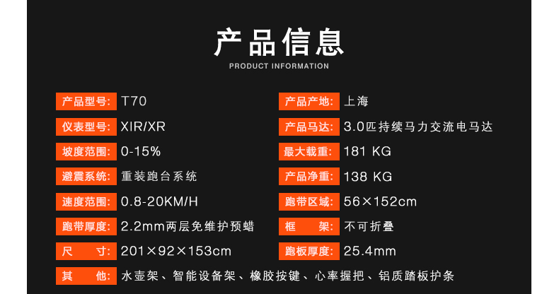 • 美國喬山MATRIX系列高端商用跑步機T70 雙層免維護預蠟跑帶