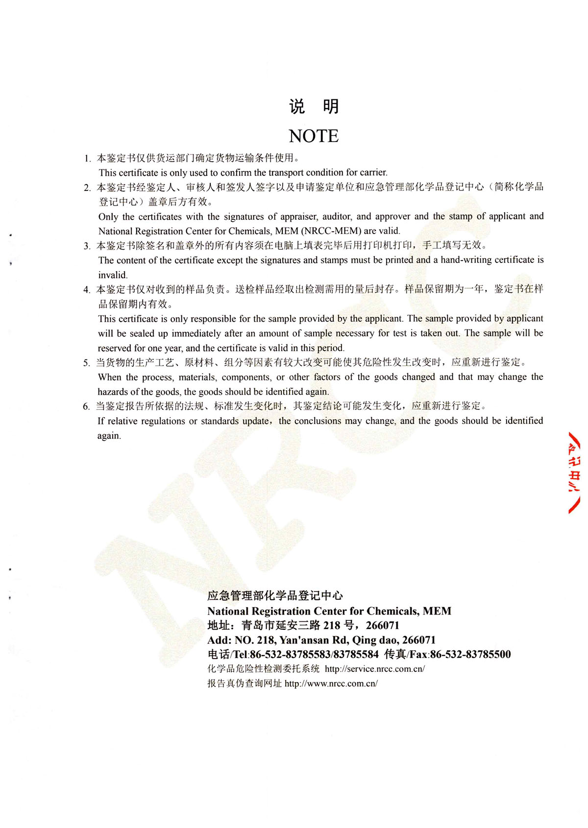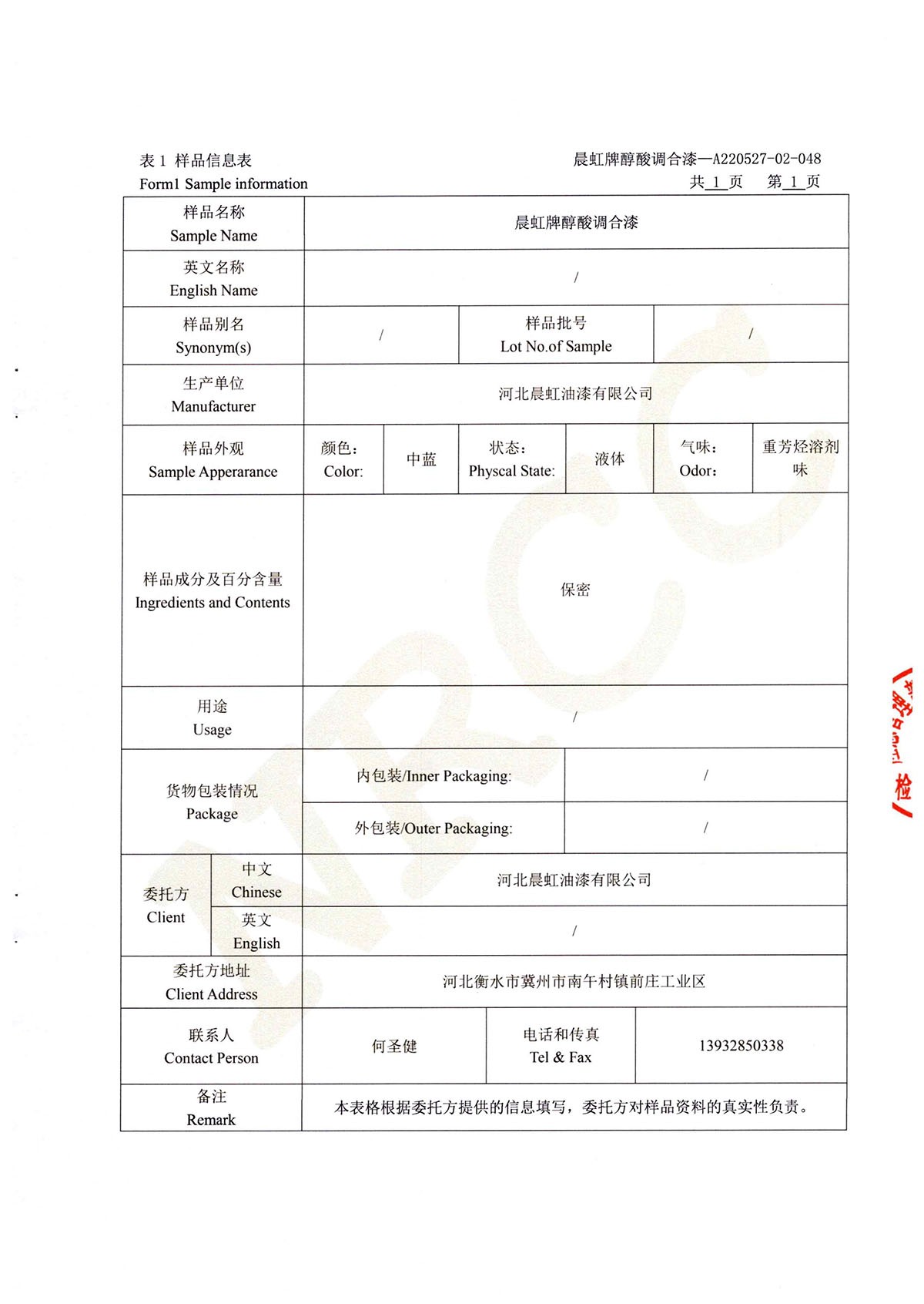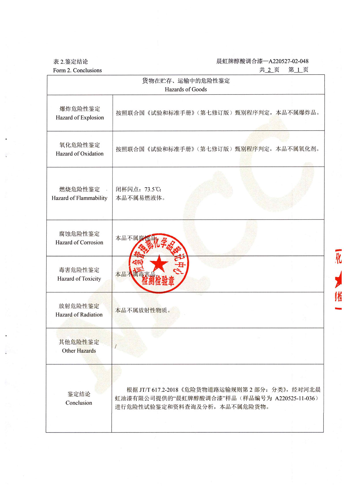 晨虹醇酸調(diào)合漆道路貨物運(yùn)輸鑒定書(shū)